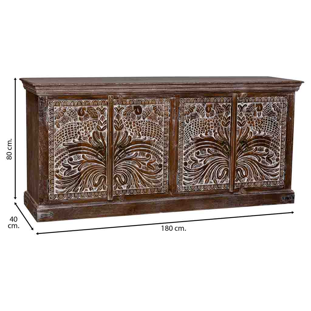 APARADOR MADERA ACABADO ARTESANAL 4 PUERTAS MARRON 180x40x80