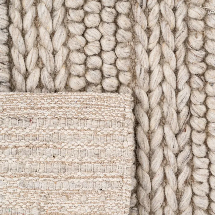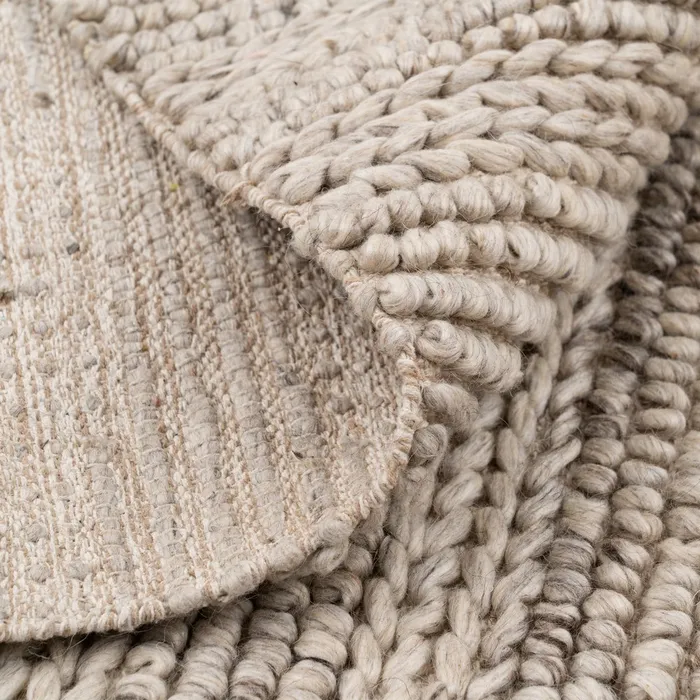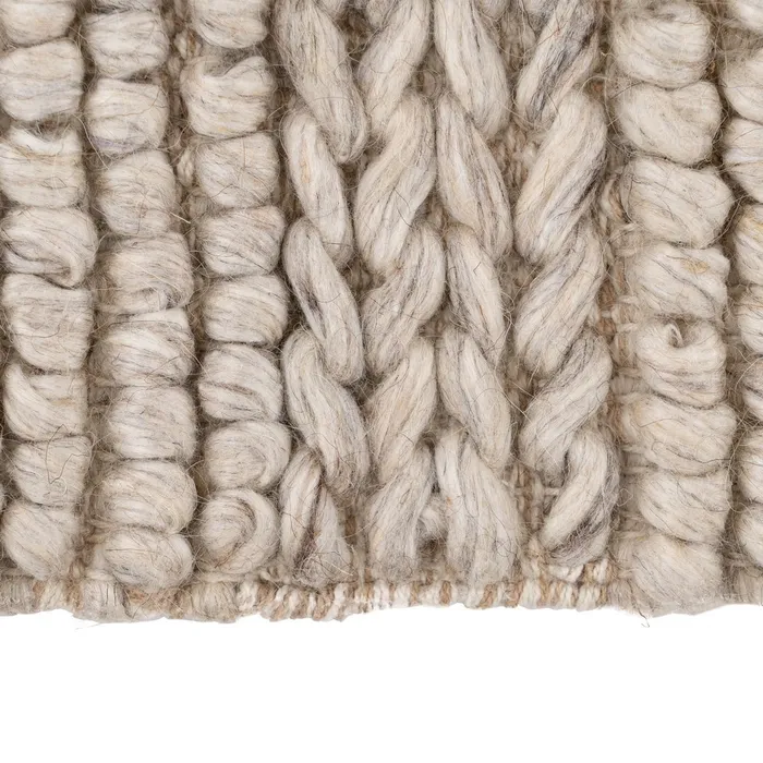 COMPOSICIÓN: 30% LANA – 40% ALGODÓN – 30% POLIÉSTER GRAMAJE: 1.900GSM No se debe lavar a máquina. No utilizar lejía. No secar en secadora. No planchar. No limpiar en seco. Aspira y rota la alfombra con regularidad. Las alfombras nuevas desprenden pelusa.Es un fenómeno natural. Aspíralas frecuentemente al principio. Manchas secas: elimínalas inmediatamente frotando cuidadosamente hacia el centro de la mancha. Manchas húmedas: no frotes. Absórbelas con papel hogar; humedécelas con un paño y un limpiador suave. Limpieza profesional de la alfombra, cuando sea necesario. Cuando aspires la alfombra para limpiarla, utiliza siempre el accesorio estándar para suelos, nunca el cepillo rotatorio.
