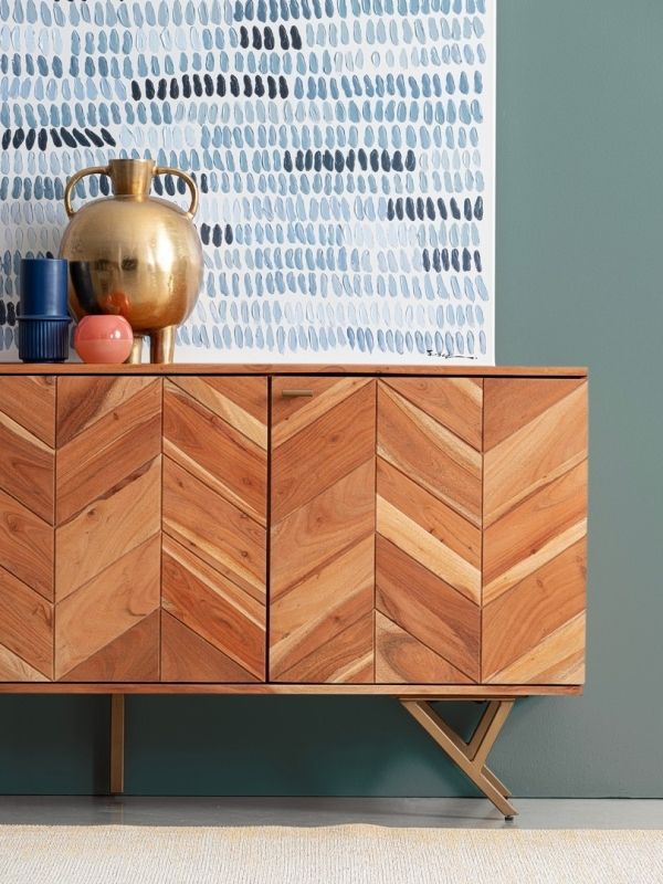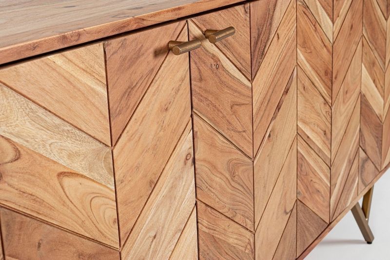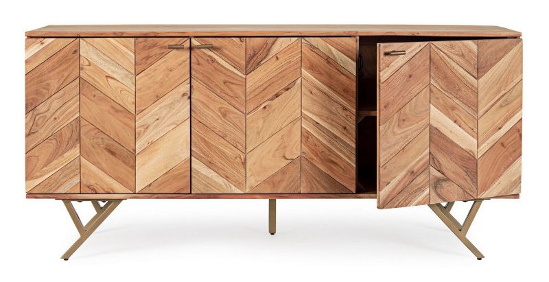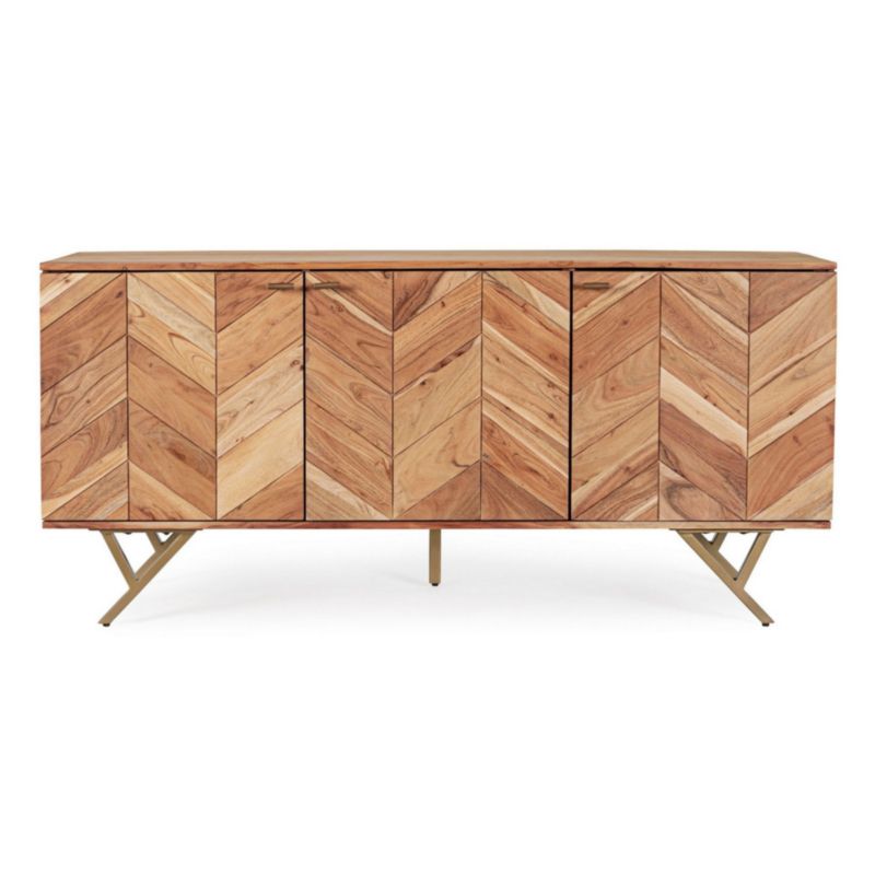 ESTRUCTURA DE MADERA DE ACACIA, PARTE TRASERA DE CONTRACHAPADO, ACABADO A BASE DE BARNIZ DE POLIURETANO. PATAS DE ACERO BARNIZADO A POLVO EPOXY. PATAS PARA MONTAR.