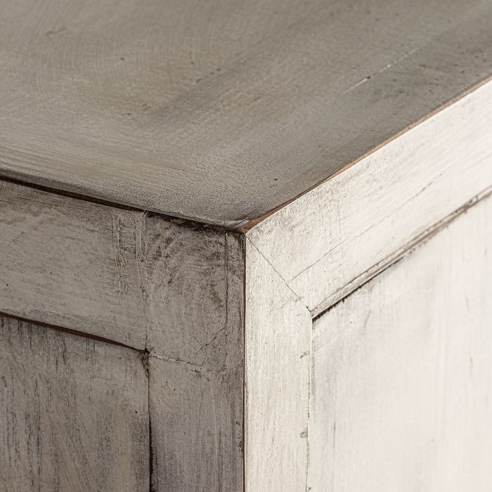 Redescubre la elegancia y el encanto del Buffet Baratti de VICAL home. Su diseño artesanal, realizado en madera de pino reciclado, irradia autenticidad y carácter. Su acabado en blanco roto decapado lo convierte en el complemento perfecto para salones y comedores. Las variaciones naturales en tonalidad y forma acentúan su exclusividad. El buffet de madera blanco roto no solo almacena, sino que cuenta una historia.