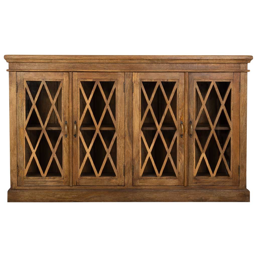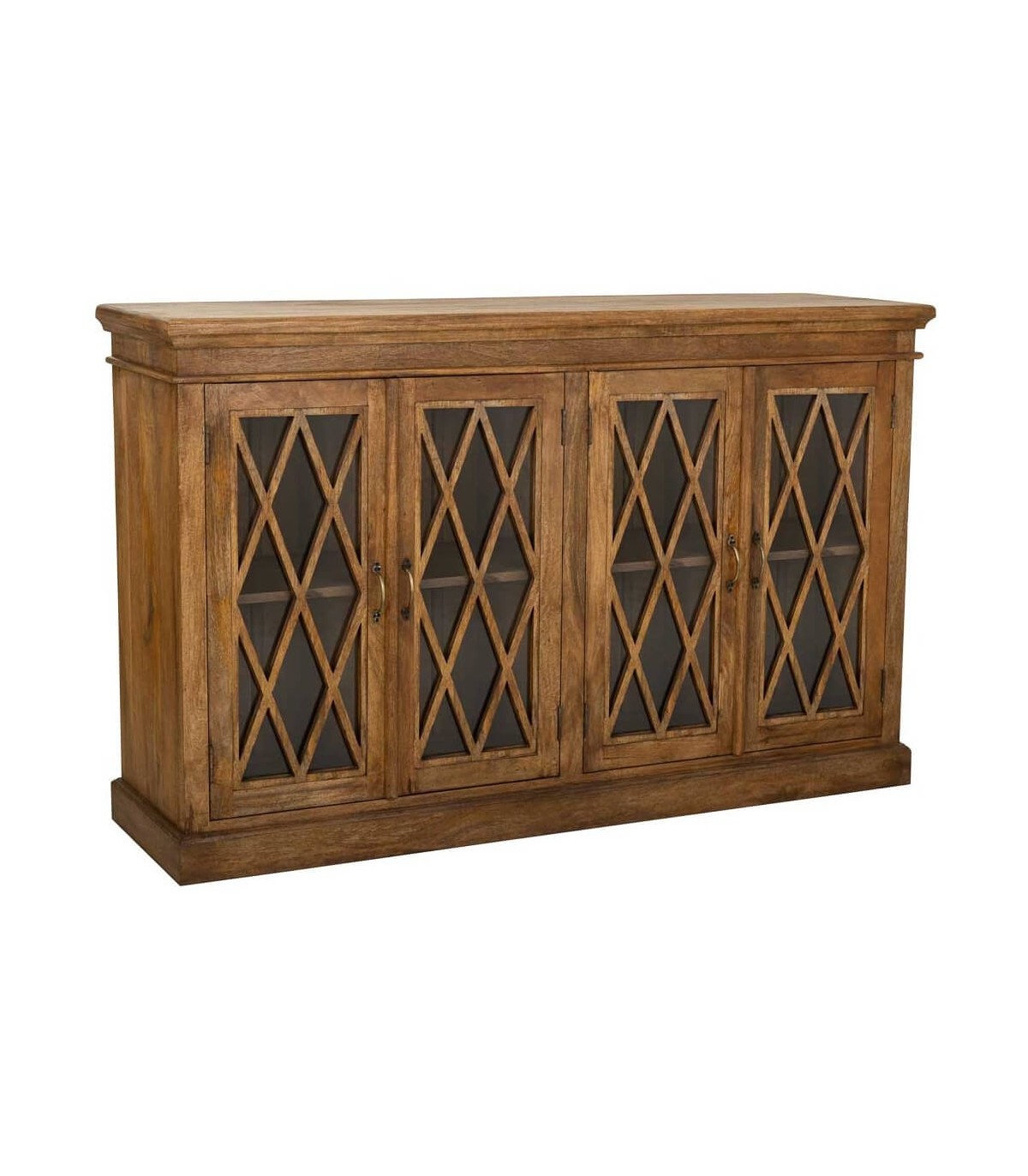 Este aparador ofrece una amplia superficie de almacenamiento y exhibición en un diseño elegante que combina madera y cristal.Con dimensiones de 170x40x100 cm, es ideal para colocar en el comedor o la sala de estar.