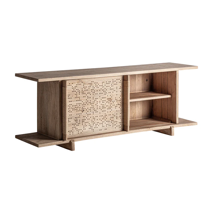 Diseñado por estudi{H}ac para VICAL, este aparador de mango en tono marrón claro reinterpreta lo clásico con un lenguaje moderno, equilibrando proporción, textura y utilidad con una marcada sensibilidad estética.