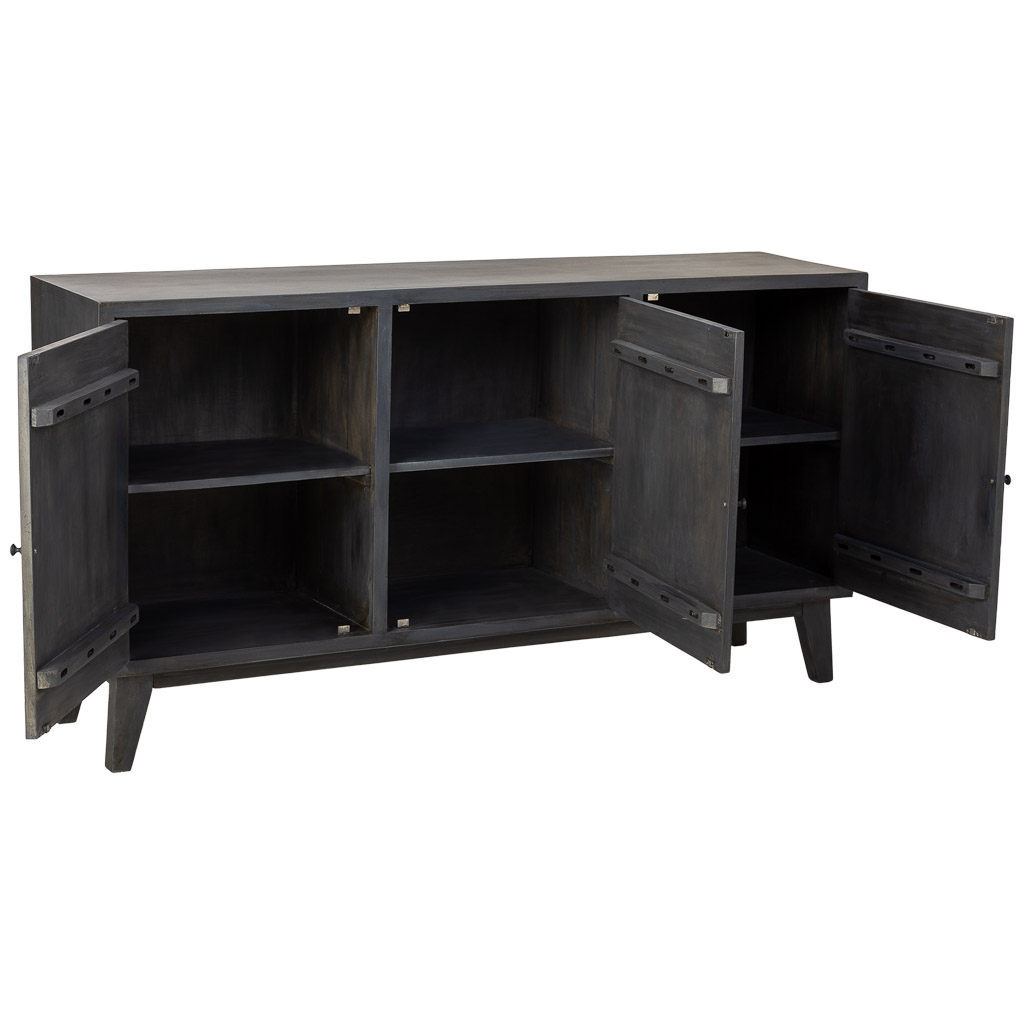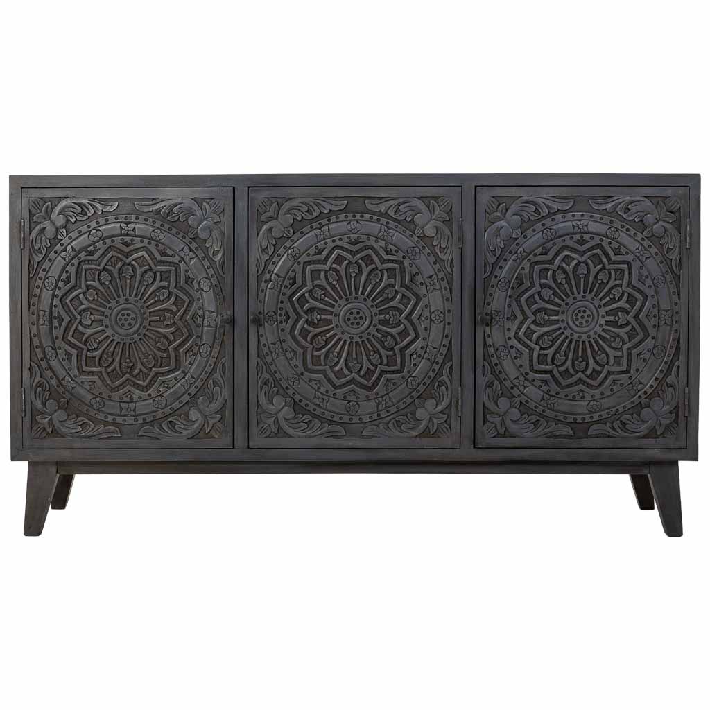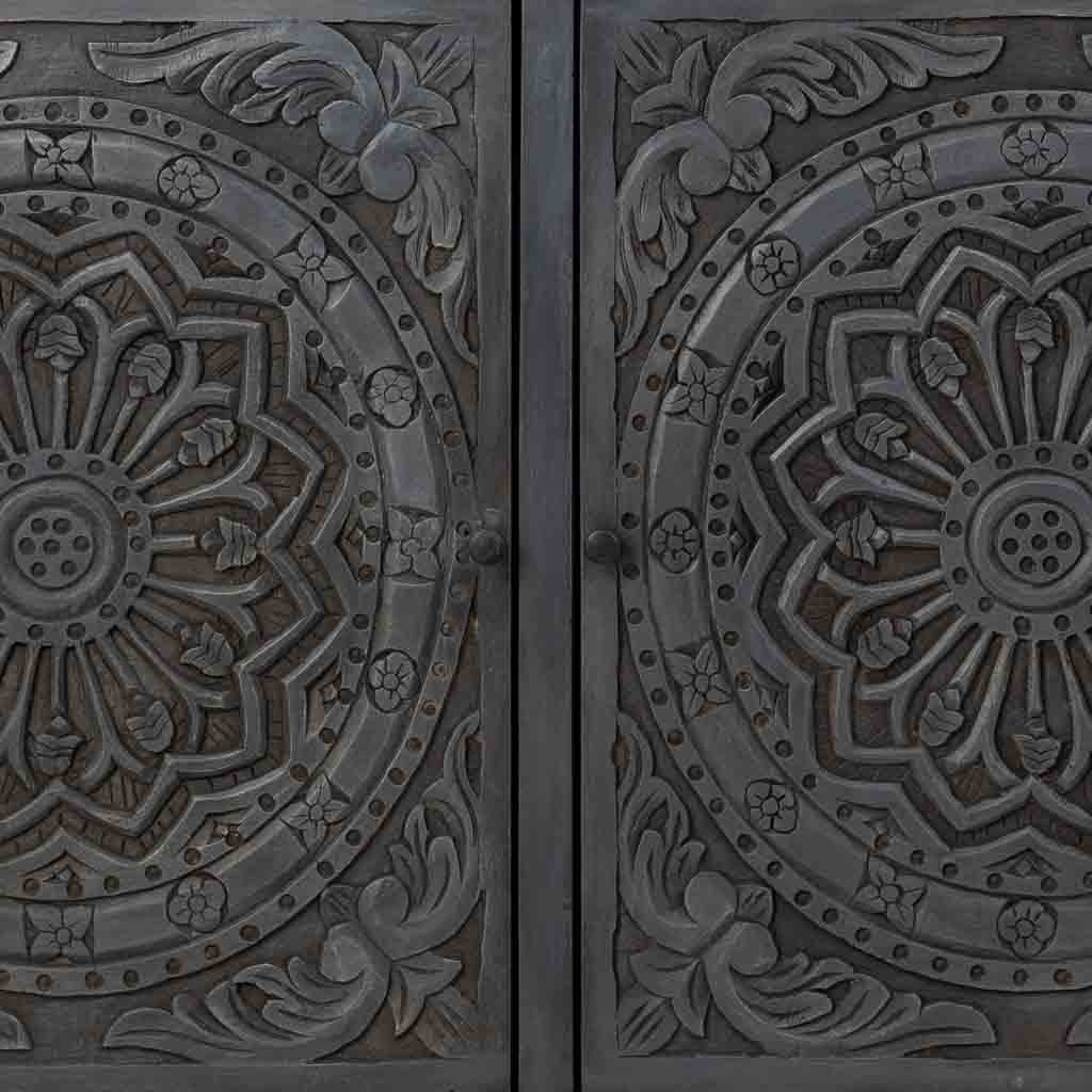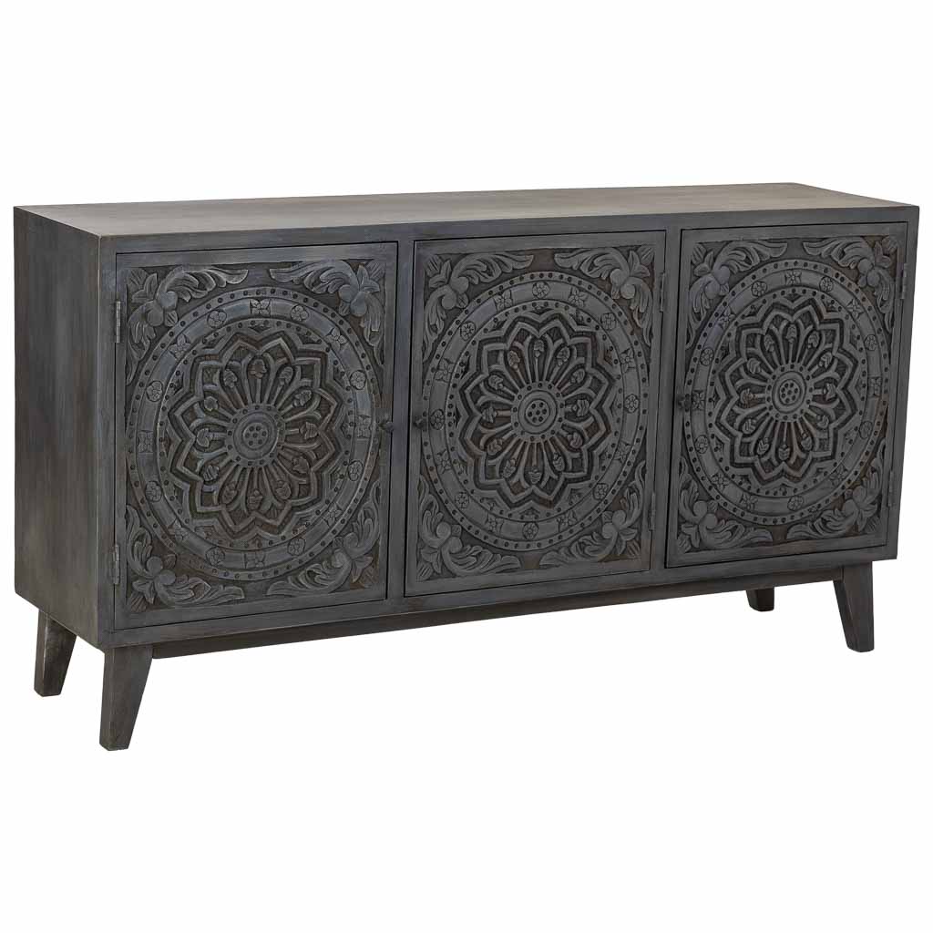 Aparador de Madera con acabado artesanal en color azul, compuesto por 3 puertas que ofrecen amplio espacio de almacenamiento. Su diseño combina funcionalidad con un estilo vibrante y rústico, ideal para añadir personalidad y orden a comedores, salones o recibidores. Una pieza llamativa que realza cualquier ambiente con su carácter artesanal.