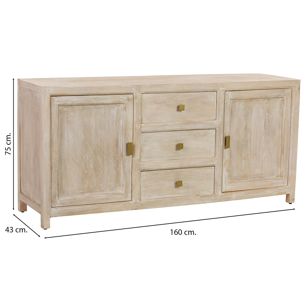 APARADOR MADERA BEIGE 3 CAJONES 2 PUERTAS 160X43X75CM