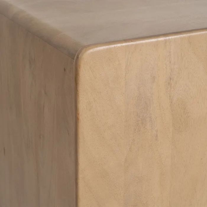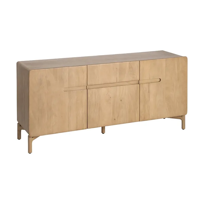 Madera de mango. Incluye 1 cajón y 2 puertas con balda interior. Medidas del cajón:44,5×38,5x14cm. Medida hueco interior:51,5×40,5x26cm. Medida hueco interior central:50x42x32cm. Altura de las patas:15,5cm. Distancia entre las patas:153cm. Las patas requieren montaje.