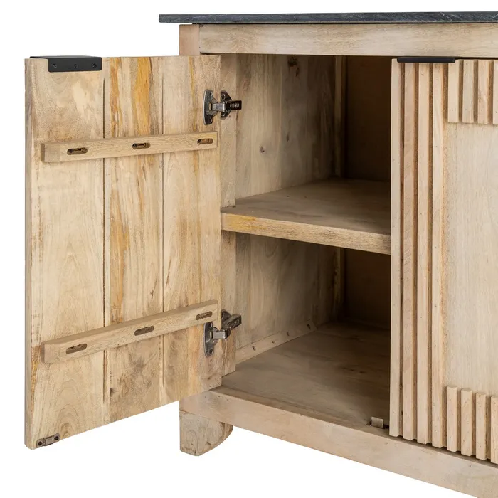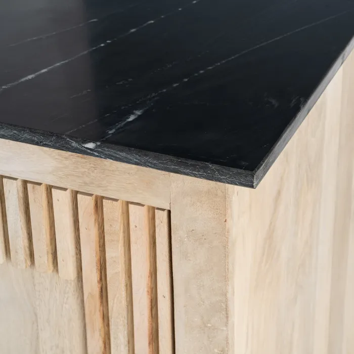 Material: madera de mango, mármol. Puertas: 39x61cm. Altura patas: 7,5cm. El mármol es un material natural que puede tener variaciones en su aspecto.