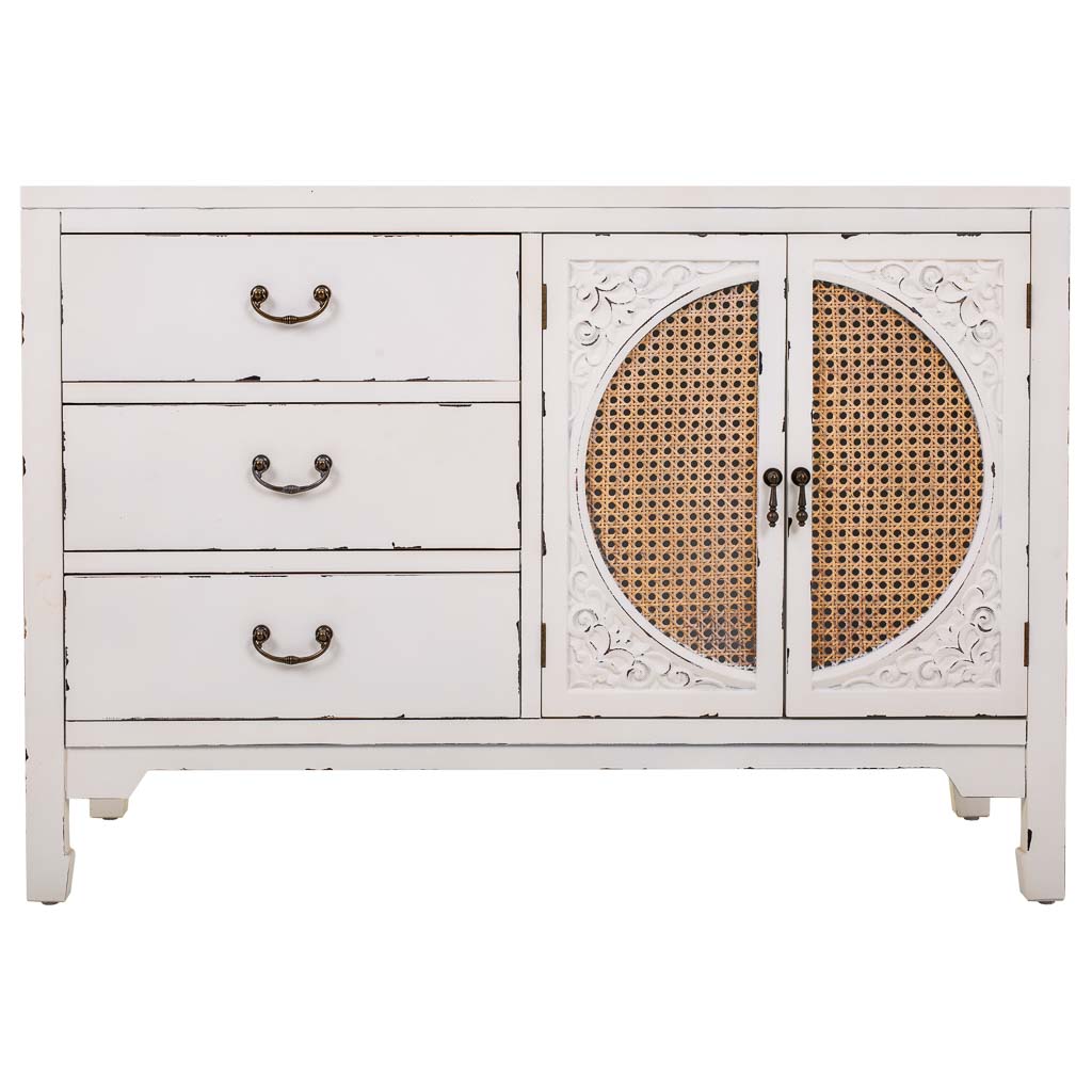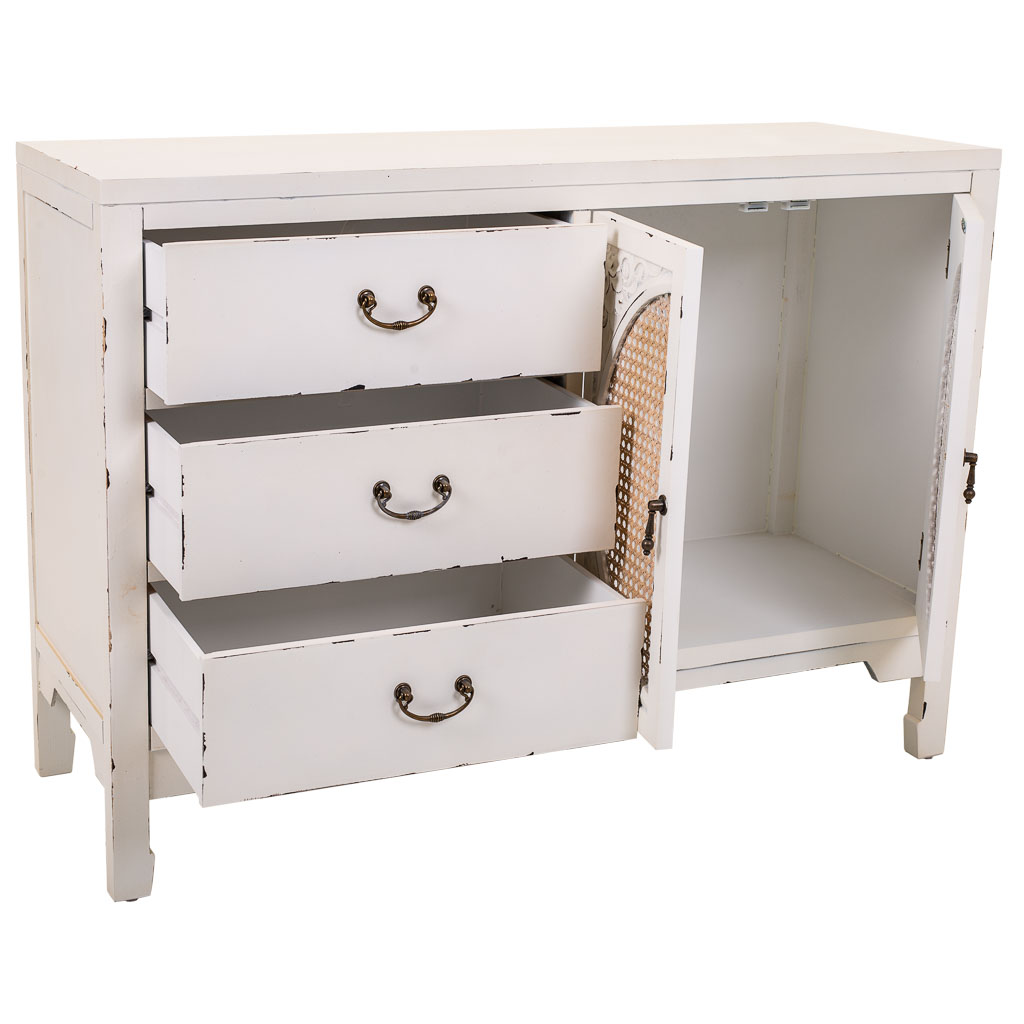APARADOR MADERA Y RATAN 3 CAJONES Y 2 PUERTAS BLANCO 106X36X73CM
