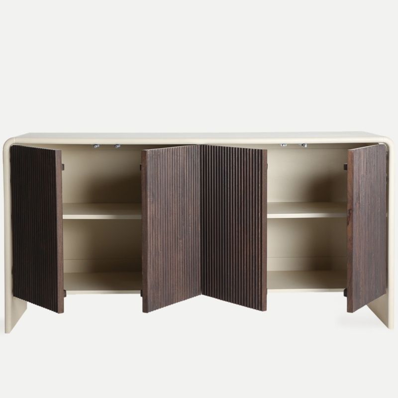 El Aparador Milhar de KODU combina ritmo, textura y una estética muy actual. La madera de mango en tono marrón crea una superficie cálida y envolvente, mientras el DM en beige aporta un contraste suave y equilibrado. Una pieza pensada para espacios que buscan diseño sin formalismos, funcionalidad real y un look natural que encaja en cualquier ambiente contemporáneo.