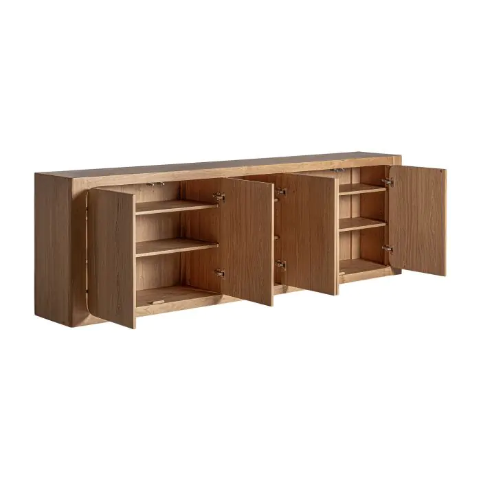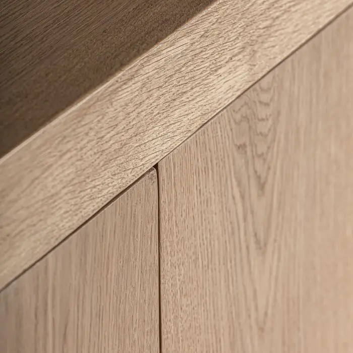 El Aparador Zelzate de VICAL destaca por su diseño art déco y su acabado en roble claro. Sus líneas geométricas y su presencia sobria lo convierten en una pieza funcional que aporta luminosidad y orden a cualquier estancia.