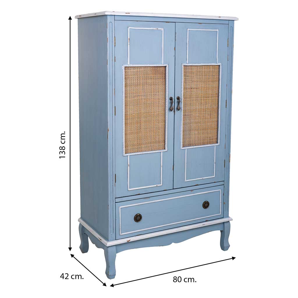 ARMARIO 80X40X138 MADERA AZUL RATÁN NATURAL