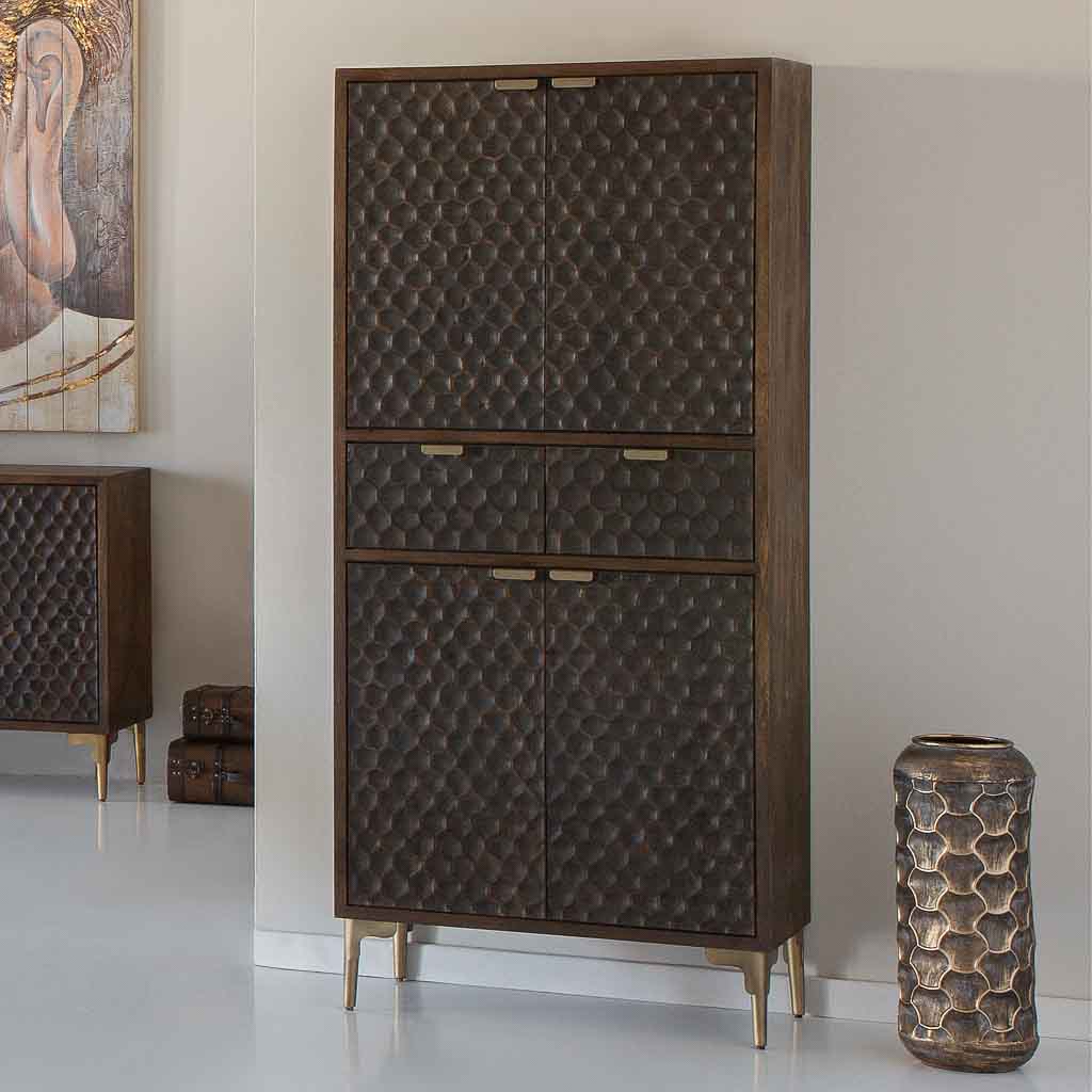 ARMARIO DE MADERA Y METAL 4 PUERTAS Y 4 CAJONES MARRON 80X40X180CM