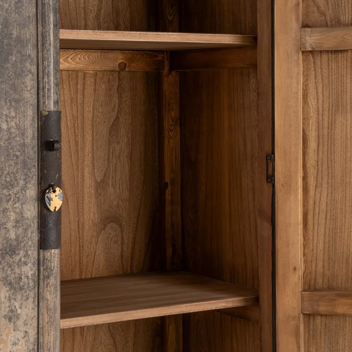 Material: madera de pino reciclada. Puertas: 42x143cm. Cajones: 42×15,5cm. Altura patas: 11cm.