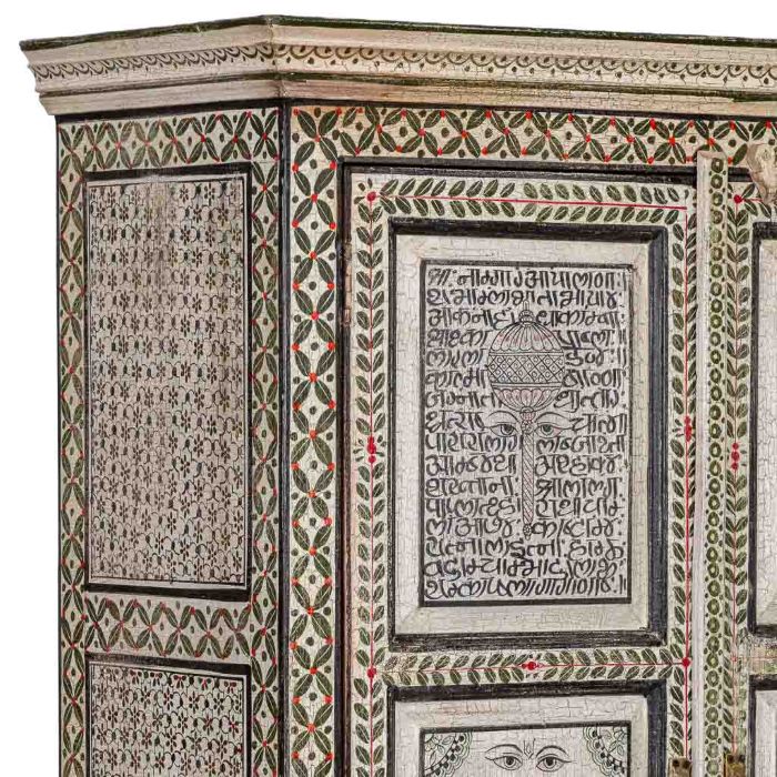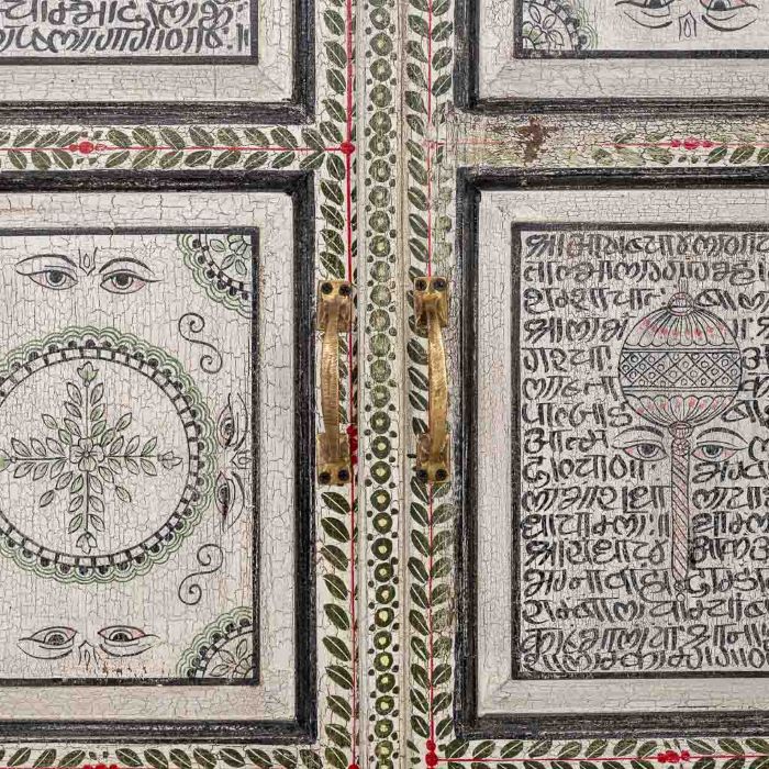 • Armario alto de madera de mango completamente pintado a mano con motivos geométricos y florales