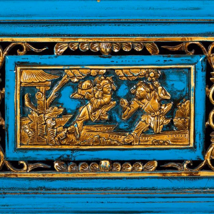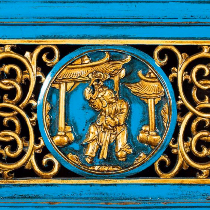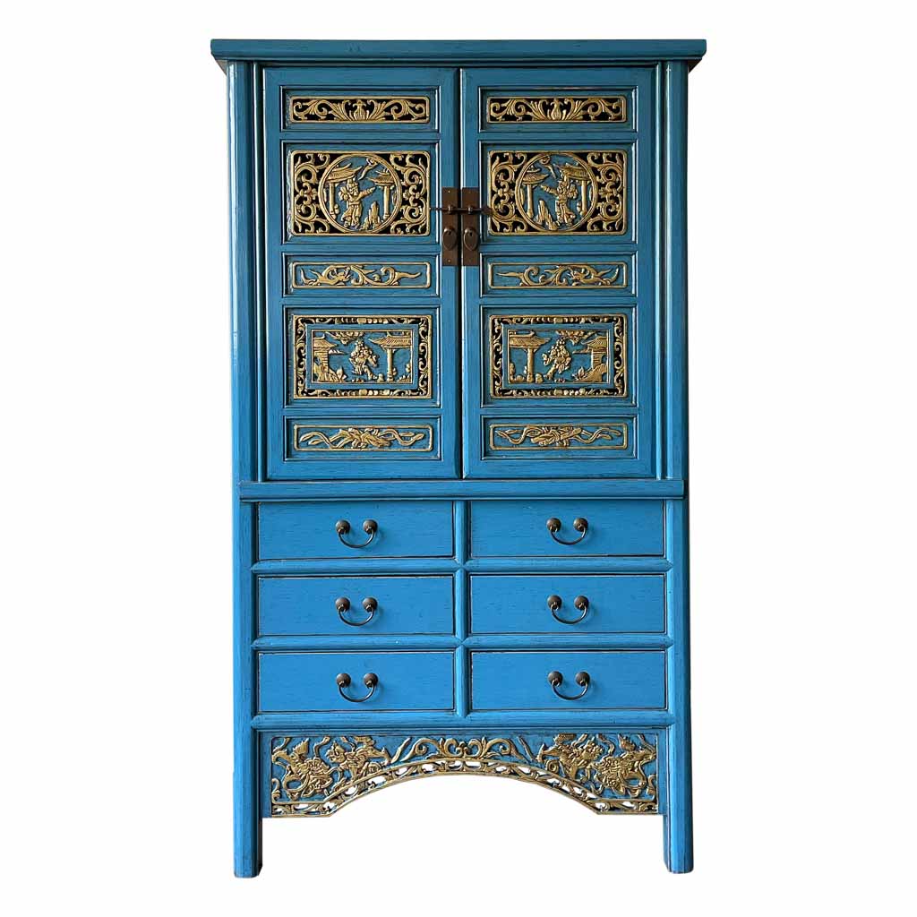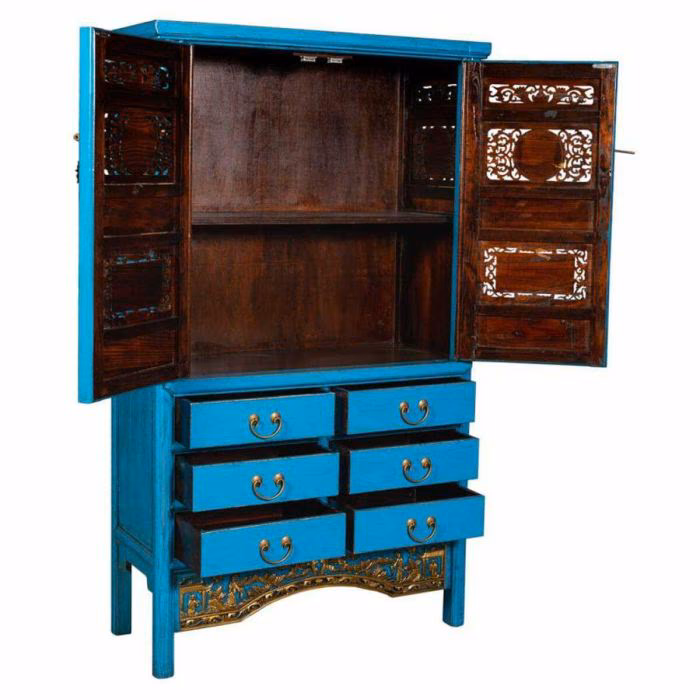Este elegante armario de madera ha sido cuidadosamente pintado a mano con un acabado artesanal en un hermoso tono azul. Sus dimensiones de 100 centímetros de largo, 43 centímetros de ancho y 170 centímetros de altura