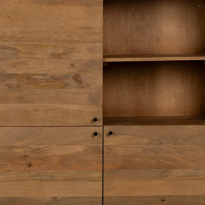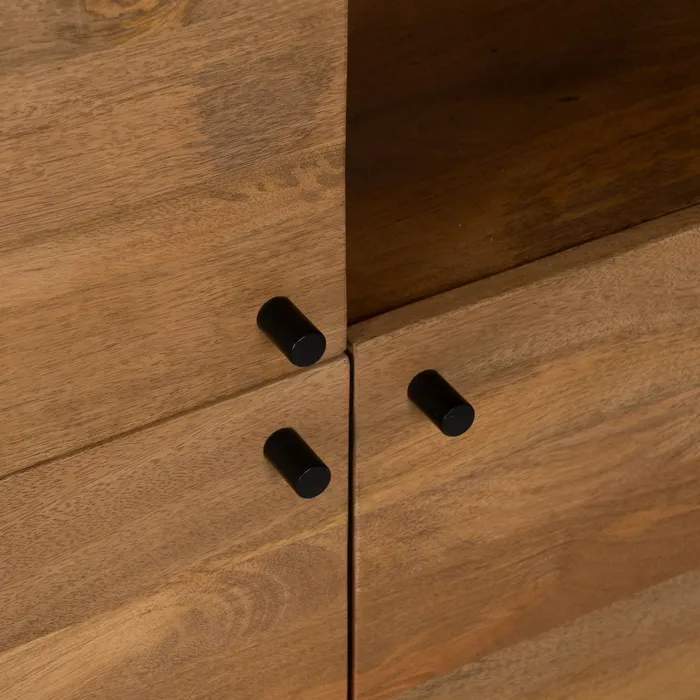 Material: madera de mango, hierro. Puertas: 53,5×59,5cm. Huecos: 54×28/30cm. Altura patas: 19cm.