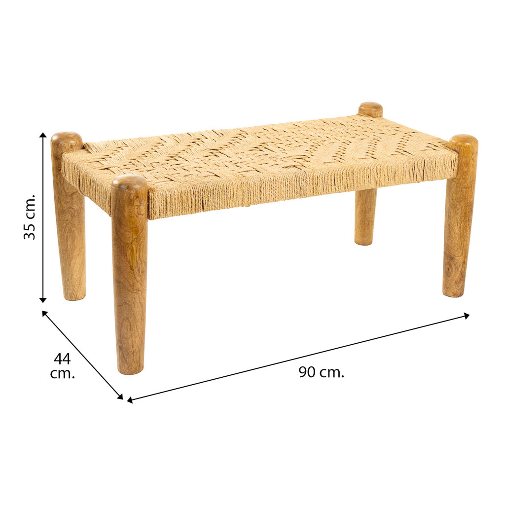 BANQUETA DE MADERA Y CUERDA MARRÓN 90X44X35CM