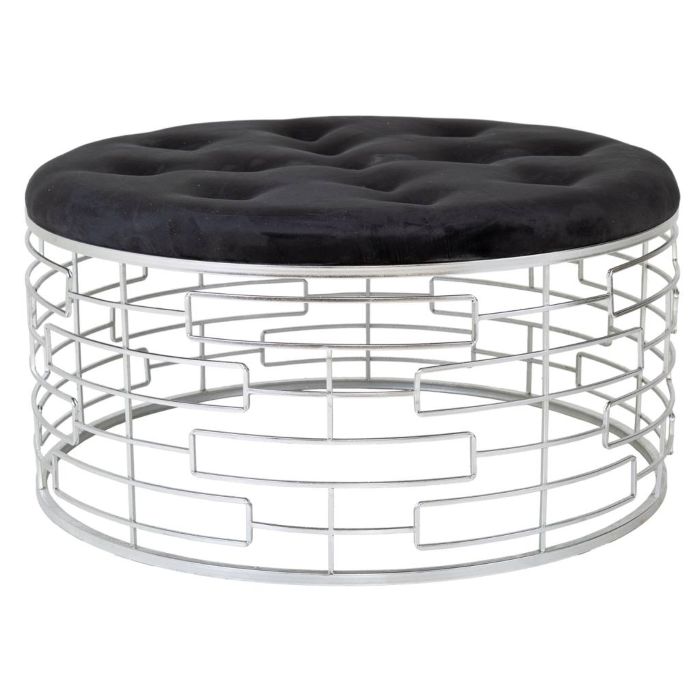 BANQUETA REDONDA TERCIOPELO NEGRO METAL PLATEADO D91,5X47