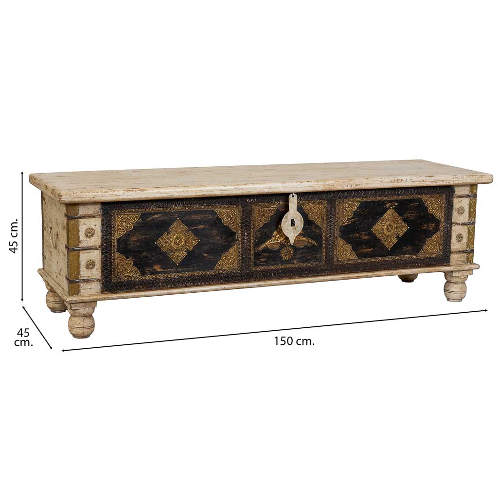 BAÚL MADERA MANGO BEIGE DECORADO 150X45X45CM