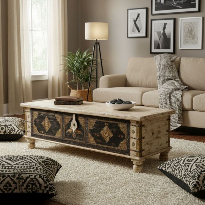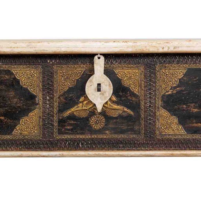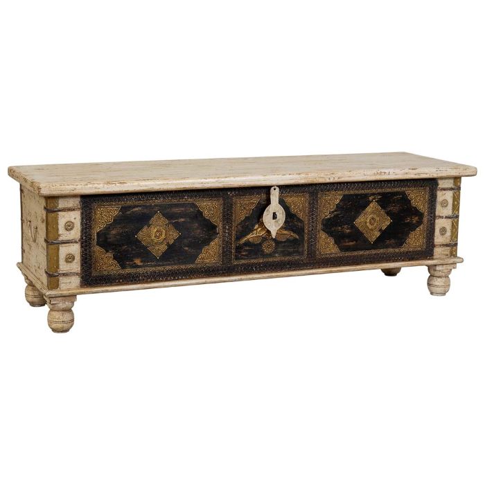 BAÚL MADERA MANGO BEIGE DECORADO 150X45X45CM