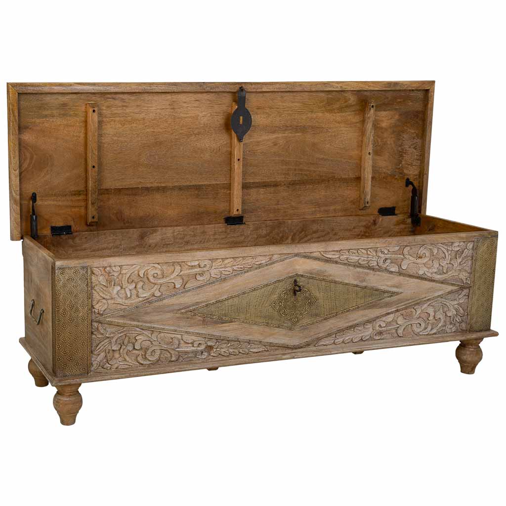 BAÚL MADERA MANGO MARRON DECORADO 150X45X46CM