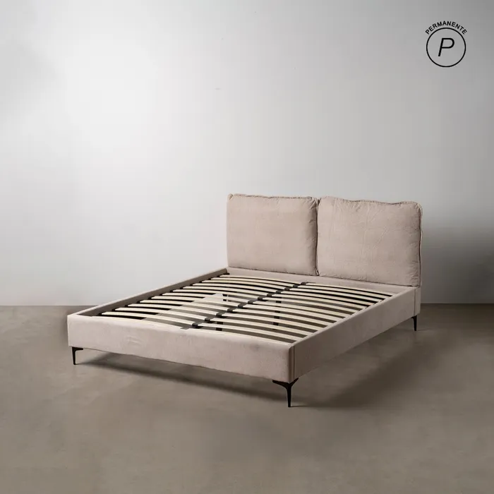 Tejido 95% poliéster, 5% nylon. Relleno: foam. Estructura: madera contrachapada. Altura patas: 13cm. Apto para colchón de 150x200cm.