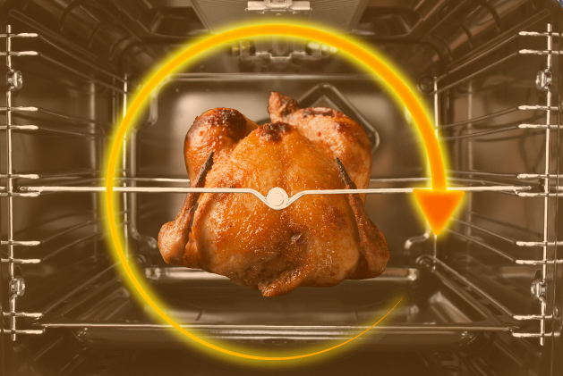 Si eres amante del pollo asado, con el accesorio rustipollo conseguirás el mejor resultado para tu plato. Con esta horquilla podrás hornear carnes y verduras y darles un toque especial gracias al sistema giratorio que reparte el calor de forma uniforme por todo el asado. Y si quieres seguir el proceso de cocción de tus alimentos con la luz interior de tu horno podrás comprobarlo paso a paso. Además, podrás asegurar