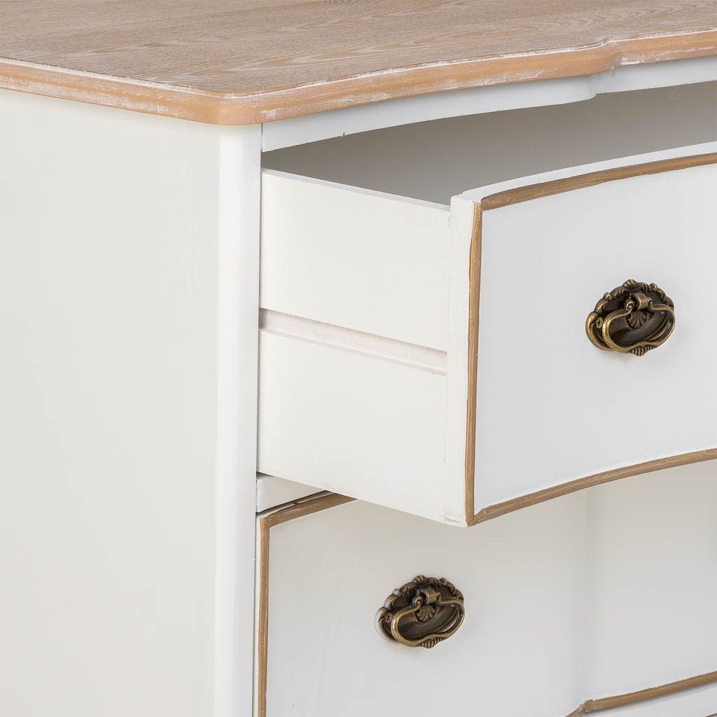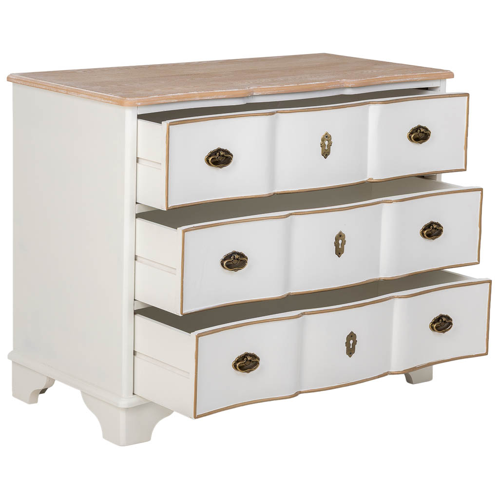 Cómoda de madera de 3 cajones blanco, diseño compacto y funcional que se adapta perfectamente a dormitorios o salas de estar, ideal para mantener el orden con estilo. Medidas: 100x50x80h cm.