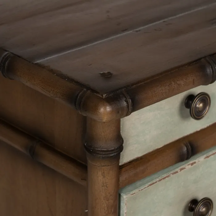 Material: madera de mindi. Cajones: 79×9,5cm / 79x13cm. Altura patas: 8,5cm.