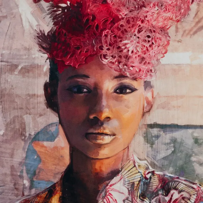 CUADRO IMPRESIÓN MUJER TEJIDO DECORACIÓN 103 X 143 CM