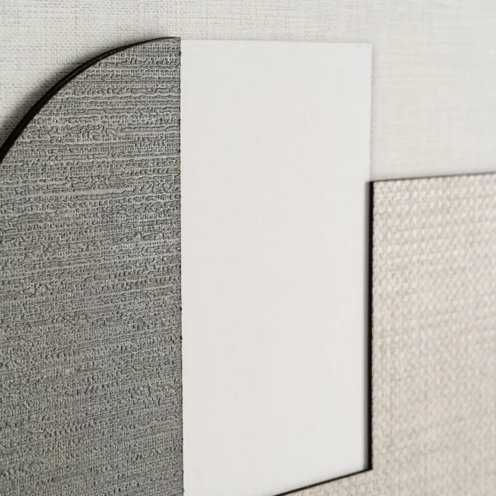 MDF IMPRESO CON VARIAS PIEZAS CORTADAS A LASER Y ENMARCADAS, MARCO DE MDF DE COLOR HAYA, TIPO DE CUELGUE: HERRAJE DE CAIMÁN.