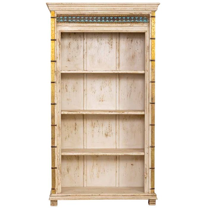 Estantería librería artesanal de madera con acabado blanco, ideal para organizar libros y objetos decorativos con estilo. Medidas: 100 × 40 × 180 cm (ancho × fondo × alto).