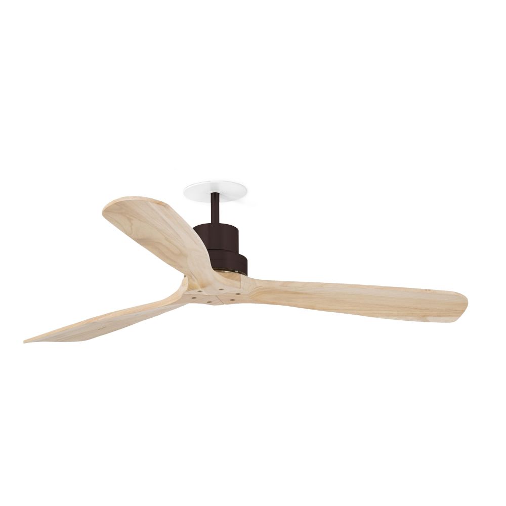 Ventilador empotrado sin luz de Ø132cm marrón-pino con palas de madera, motor DC, mando y función inversa.