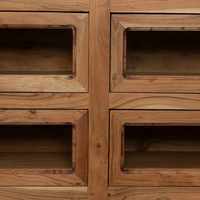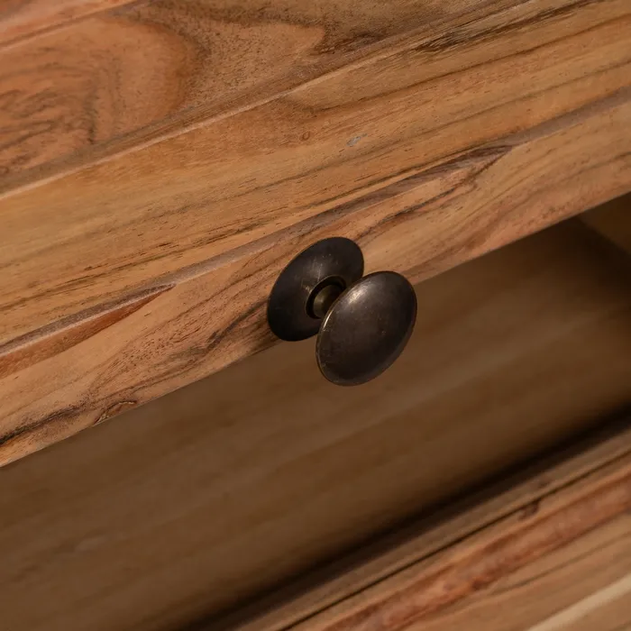 Material: madera de mango, mármol. Incluye cajones por ambos lados, medidas: 53,5x23x20cm. Baldas laterales: 59,5×14,5cm. El mármol es un material natural que puede tener variaciones en su aspecto.
