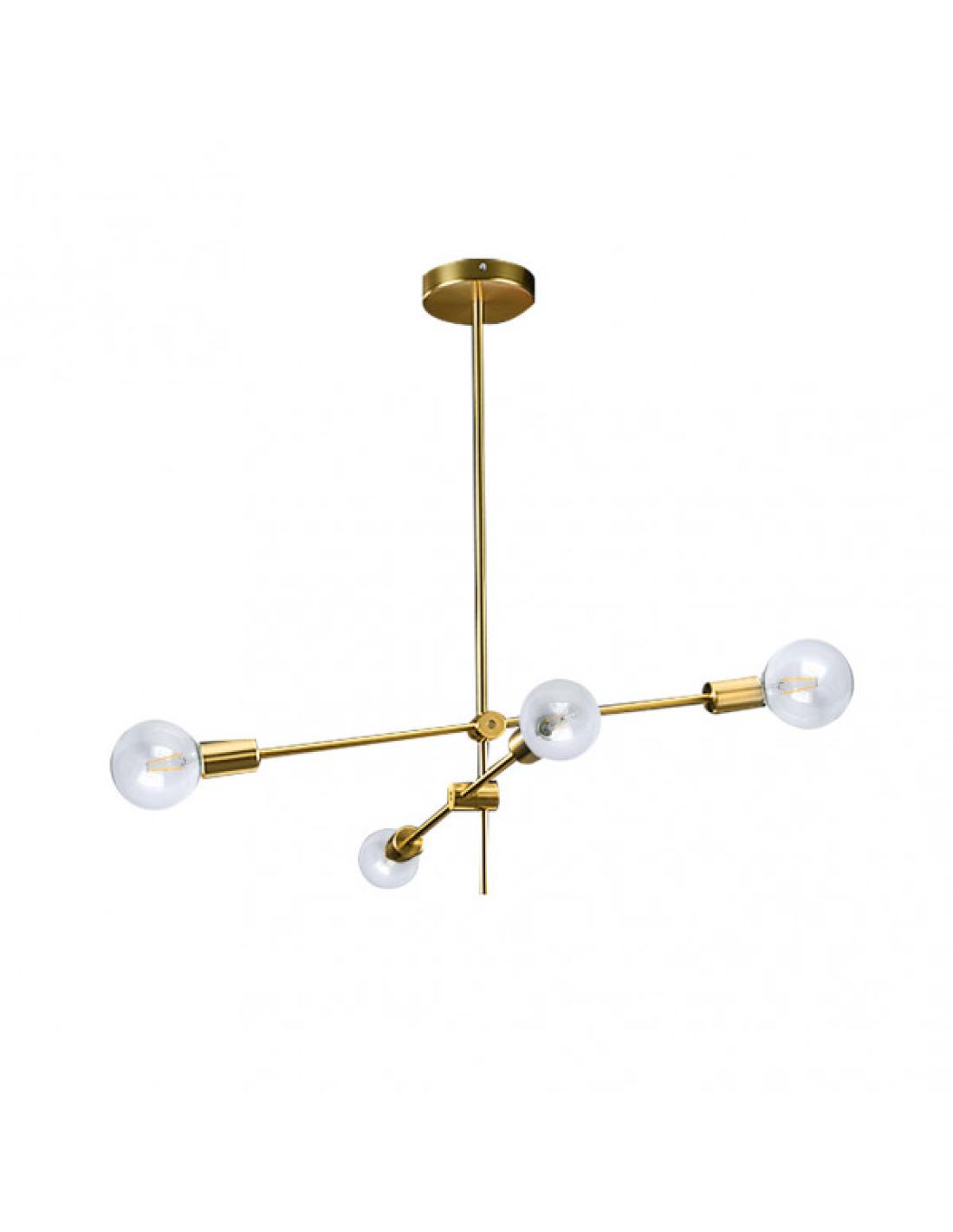 Lámpara de cuatro luces de la serie JERUSALEN de color BRONCE. Está compuesta por un cuerpo central de metal en el cuál convergen de forma horizontal dos partes rígidas, pudiéndose  orientar la proyección de la luz en su plano vertical y la disposición de sus brazos. Viene SIN TULIPAS, y al estar las bombillas al descubierto, tiene una proyección directa de la luz. Se recomienda acompañar con una bonita bombilla Vintage, resultando una composición muy original y bonita de estilo moderno, como por ejemplo con la bombilla de filamentos 141341081, 141341181 ó 14144114C. . Sus dimensiones son de  64x71x71 centímetros. Posee cuatro porta lámparas E27. Bombillas no incluidas.  Ideal para decorar e iluminar cualquier estancia de la casa o lugar de trabajo, dando un toque sofisticado y elegante, acorde tanto con estilo moderno como clásico o rústico. Está disponible también en la versión de la misma serie, lámpara de seis luces . En esta misma serie, también podemos encontrar la lámpara de seis luces y la de cuatro luces, el pie de salón de tres luces y la sobremesa con una doble tulipa y con portalámparas G9, proyectando una luz cálida y difusa a la estancia.