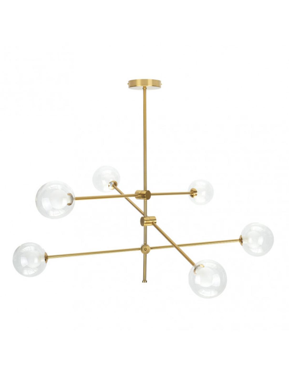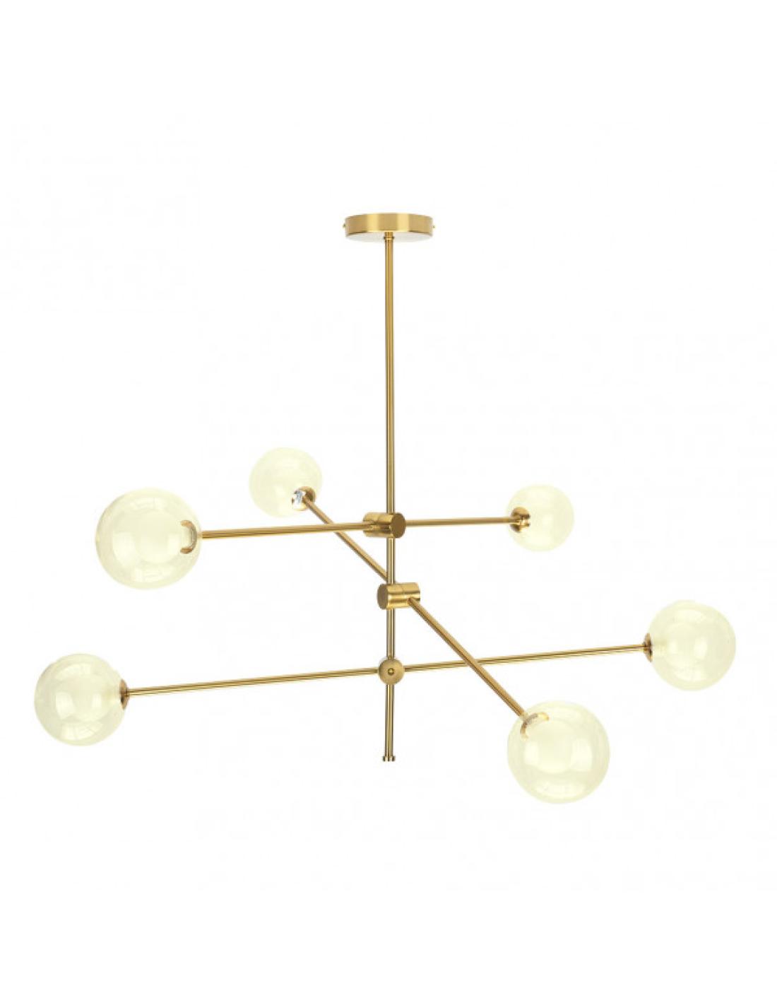 Lámpara de seis luces de la serie JERUSALEN de color BRONCE con dobles tulipas, blancas y  transparentes. Está compuesta por un cuerpo central de metal en el cuál convergen de forma horizontal tres partes rígidas, pudiéndose  orientar la proyección de la luz en su plano vertical y la disposición de sus tulipas. Sus dobles tulipas, una transparente y otra de color blanco en su interior, proyectan una luz cálida y difusa en general, resultando una composición muy original y bonita de estilo moderno. Sus dimensiones son de  72x90x90 centímetros. Posee seis porta lámparas G9. Bombillas no incluidas. Aconsejable usar G9 de 4W, como las de las referencias 148003041,148030042 ó 148003043. Ideal para decorar e iluminar cualquier estancia de la casa o lugar de trabajo, dando un toque sofisticado y elegante, acorde tanto con estilo moderno como clásico o rústico.  Está disponible también en la versión de la misma serie, lámpara de cuatro luces, sobremesa y el pie de salón con tres luces. En esta misma serie, también podemos encontrar la lámpara de seos luces y la de cuatro luces, con una sola tulipa transparente y con portalámparas E27, por si prefieren acompañar con bombillas vintage.