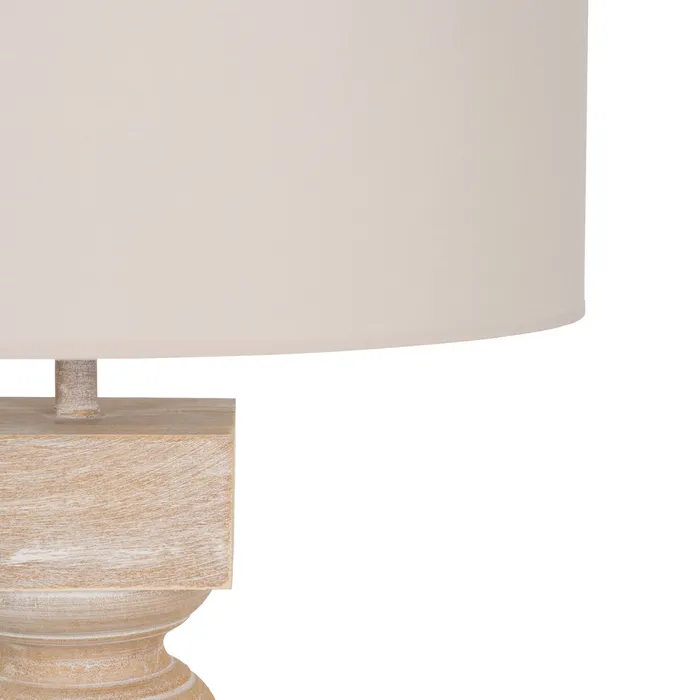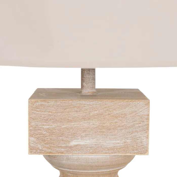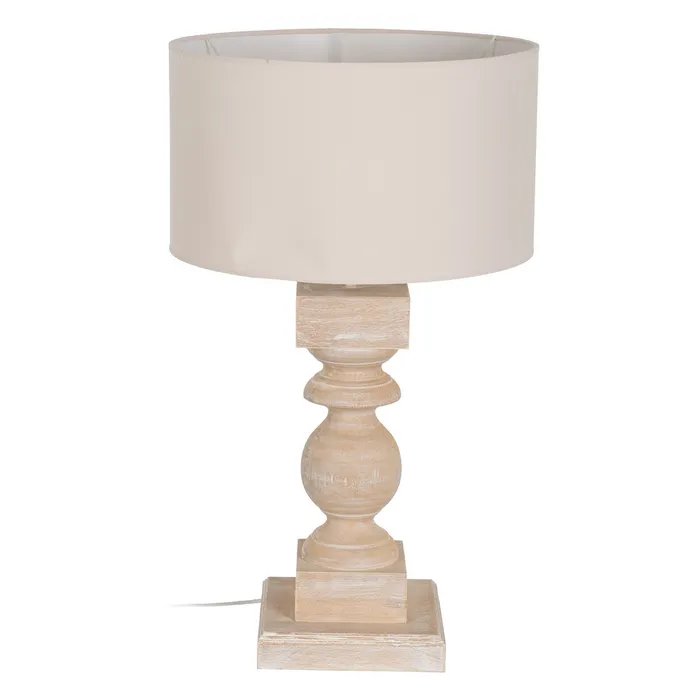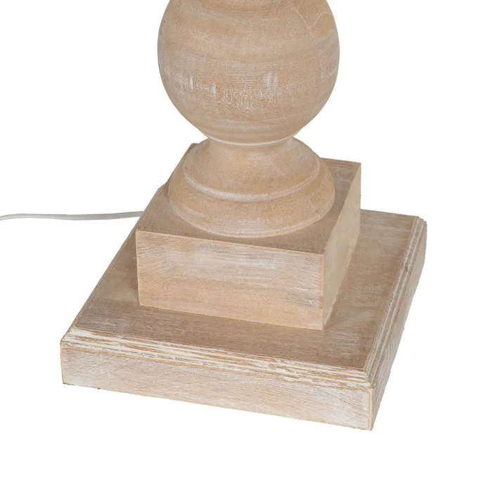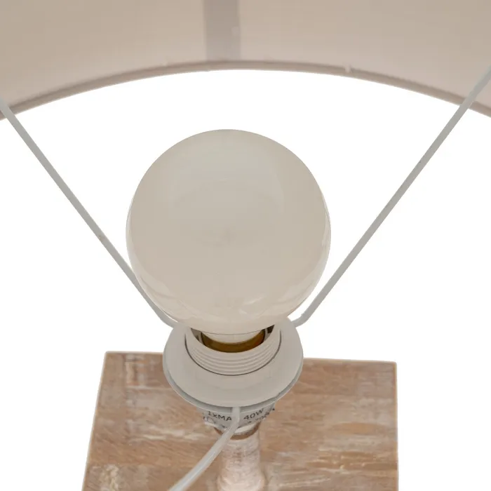 Material base: Dm. Medida base: 25x25x55cm. Material tulipa: Algodón, lino. Medida tulipa: 48x48x27cm. Cable blanco, medida: 140cm. Voltaje: 220-240V. Casquillo: E27. Bombilla: Máx. 40W (no incluída).