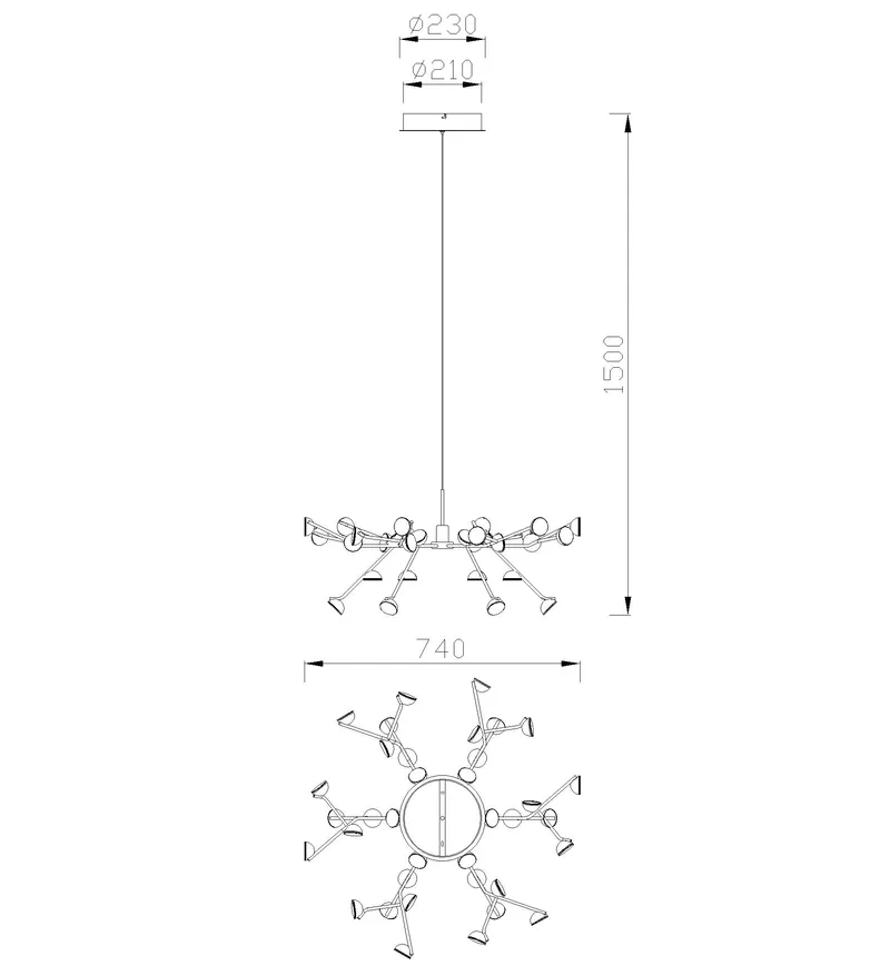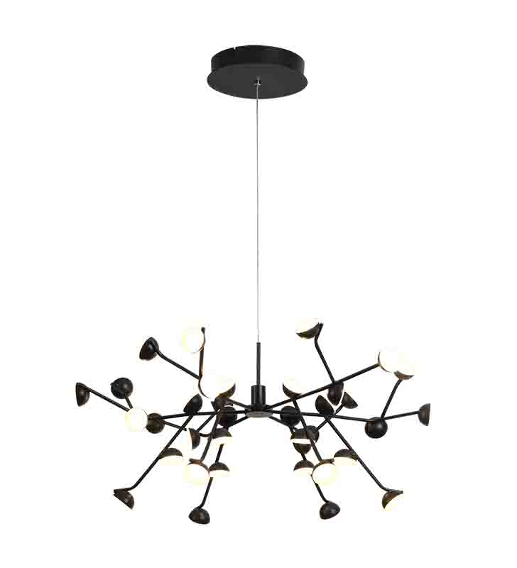 Lámpara de techo grande de diseño actual y moderno, modelo ADN LED. Ideal para la iluminación decorativa. Acabado en color negro. Fabricada en aluminio. Voltaje 220-240V y fuente de luz cálida LED 100W 3000K 7250Lm (incluidas).