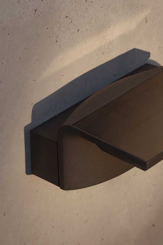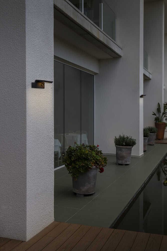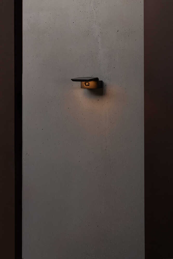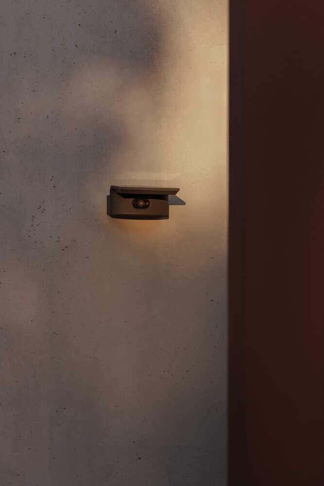 LUMA es un aplique de exterior híbrida con carga solar y eléctrica, equipada con sensor de movimiento configurable. Su lente optimiza la proyección frontal de la luz, permitiendo iluminar más con menos unidades y maximizando el ahorro energético.