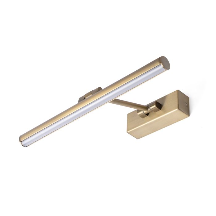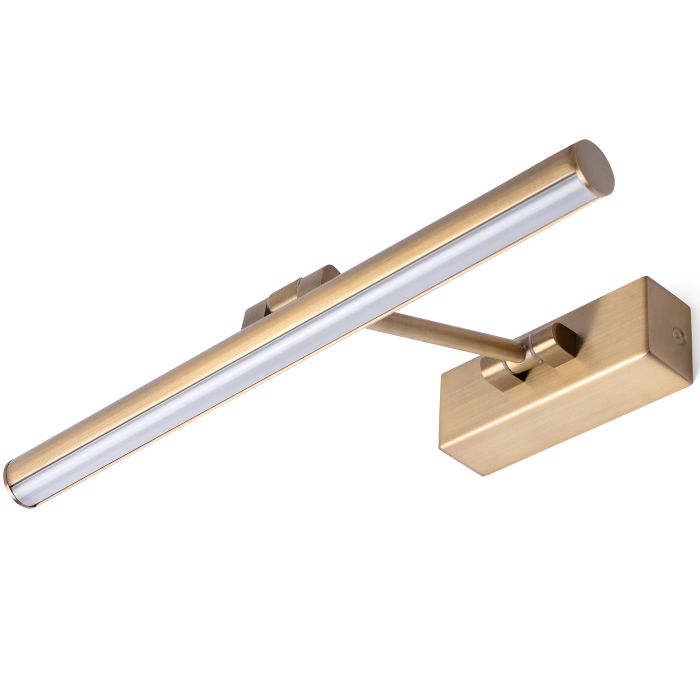 Aplique iluminacuadro modelo MAGRITTE-1 LED. Ideal para iluminar y resaltar los detalles de cuadros y fotografías. Acabado en color oro viejo. Diseño estilo moderno. Fabricada en acero. Voltaje 100-240V y fuente de luz cálida LED 6W 3000K 380Lms (incl.).