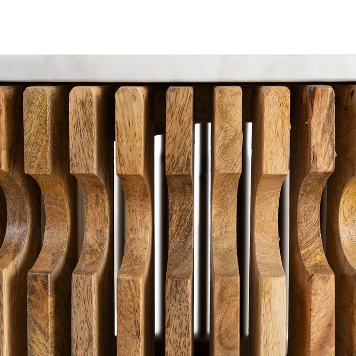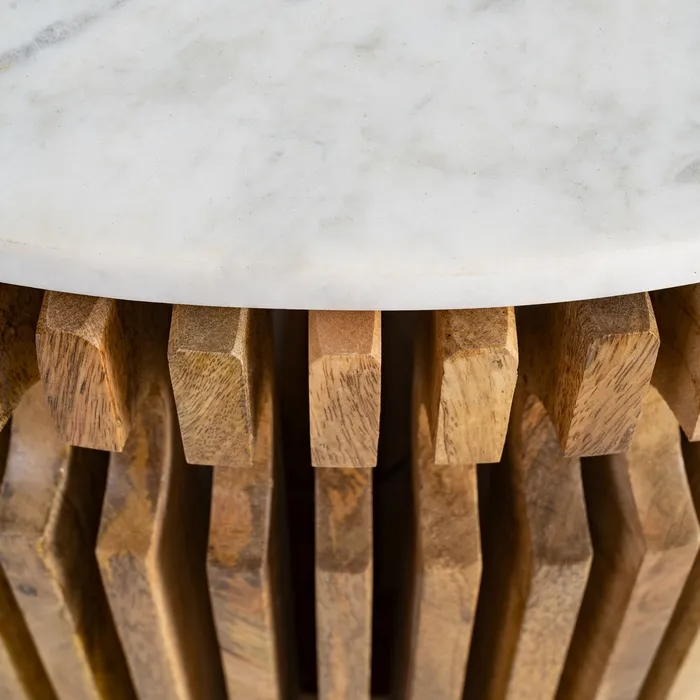 Material: madera de mango, mármol. Medida sobre de mármol: diam 77cm x grosor 2cm. El mármol es un material natural que puede presentar variaciones en su aspecto.