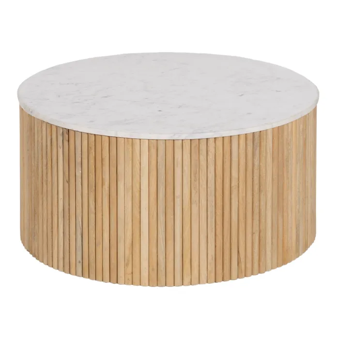 MESA CENTRO NATURAL-BLANCO MÁRMOL/MADERA 80 X 80 X 40 CM