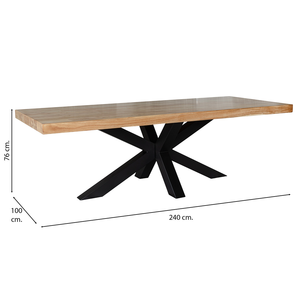 MESA COMEDOR MADERA ACACIA MARRÓN PATAS HIERRO 240X100X76CM
