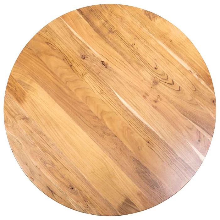 • Mesa redonda D130 cm de acacia con borde suizo redondeado, acabado premium