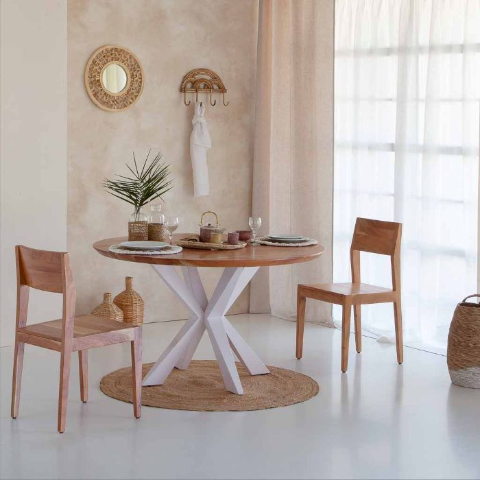 MESA COMEDOR MADERA ACACIA NATURAL BLANCO 130X130X77CM