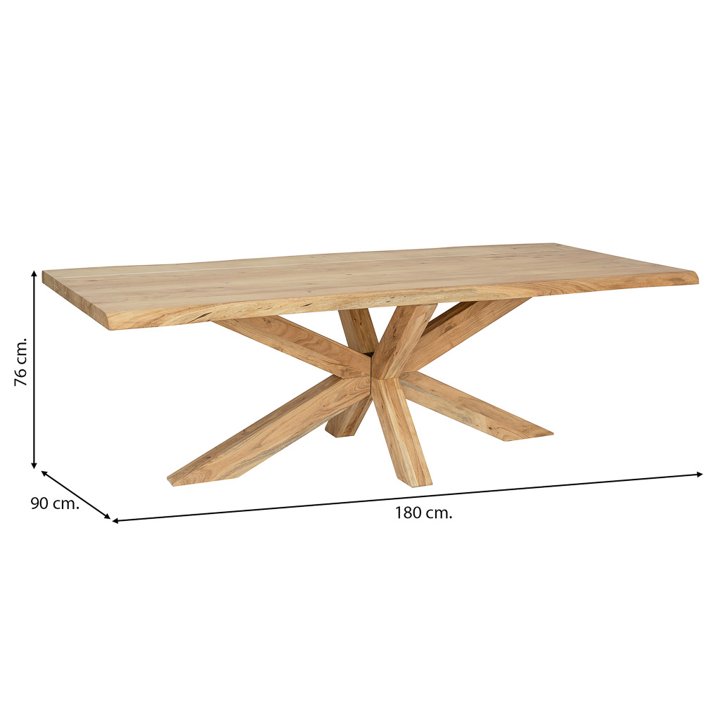 Esta mesa de comedor en madera con acabado marrón combina resistencia y elegancia, perfecta para espacios familiares y ambientes modernos o rústicos. Con una superficie amplia de 180×90 cm y una altura cómoda de 76 cm, ofrece espacio suficiente para reuniones y comidas. Su diseño robusto y líneas sencillas permiten una integración versátil en distintos estilos decorativos, mientras que la calidad de la madera garantiza durabilidad y estilo atemporal.