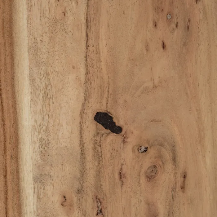 Material: madera de acacia, patas de hierro. Grosor del tablero: 5cm.