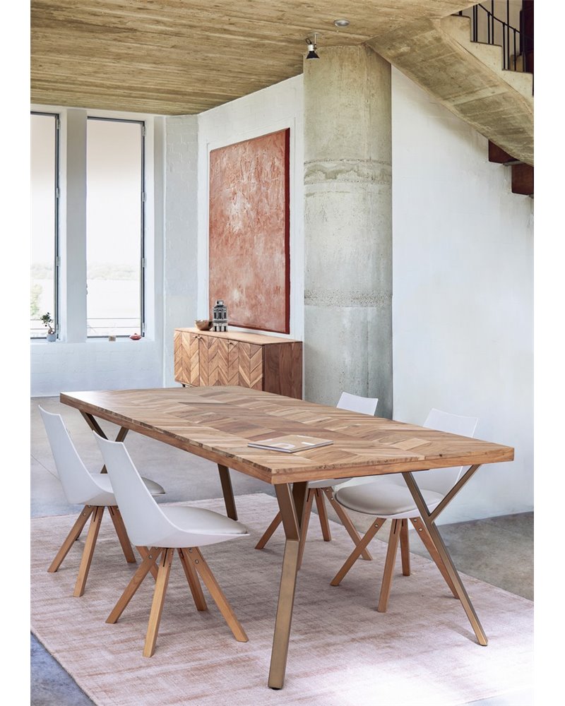 TAPA DE MADERA DE ACACIA, ACABADO A BASE DE BARNIZ DE POLIURETANO. PATAS DE ACERO BARNIZADO A POLVO EPOXY. PARAS PARA MONTAR.
