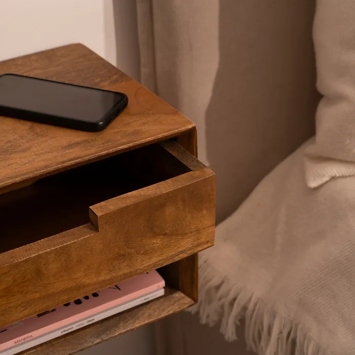 MESITA FLOTANTE MIEL MADERA DE MANGO 40 X 25 X 23 CM
