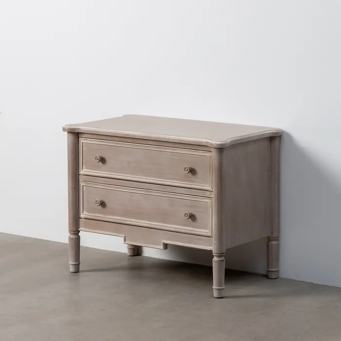 Material: madera de abeto – Dm Altura patas: 18cm. Medida cajones: 66×15.5cm.