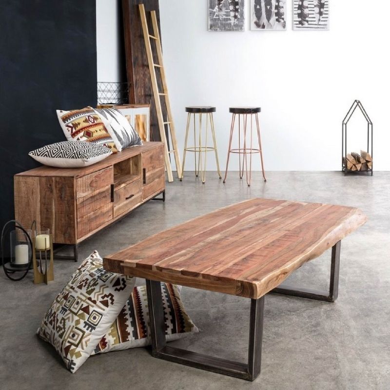 Mueble de TV moderno con pies de acero y madera de acacia.